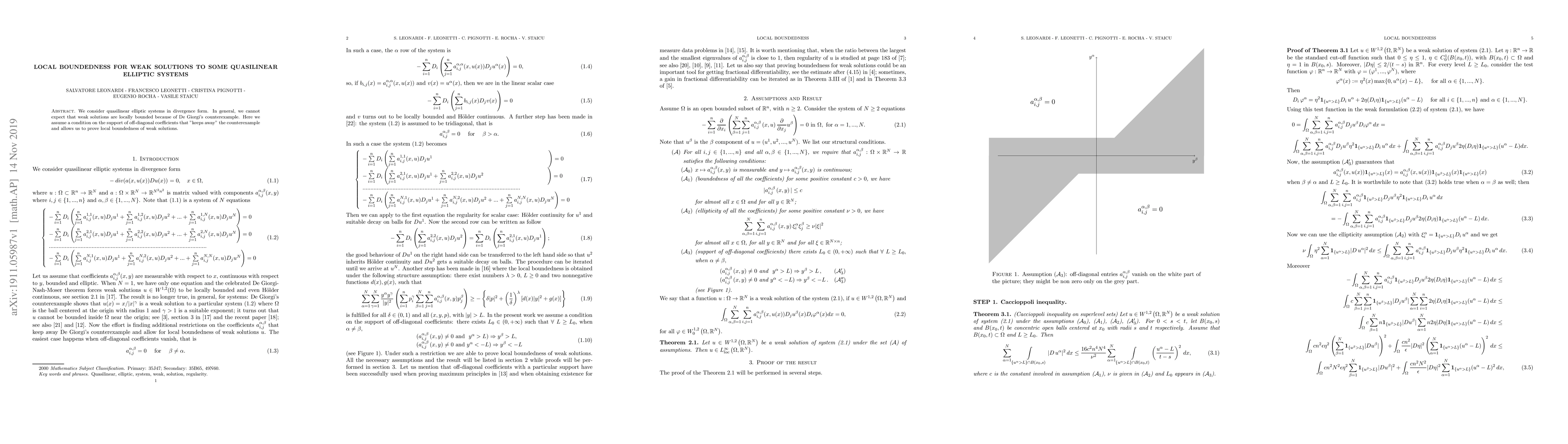 Summary: This paper investigates quasilinear elliptic systems in divergence form, proving local boundedness of weak solutions under a specific condition on the support of off-diagonal coefficients, which circumvents De Giorgi's counterexample.