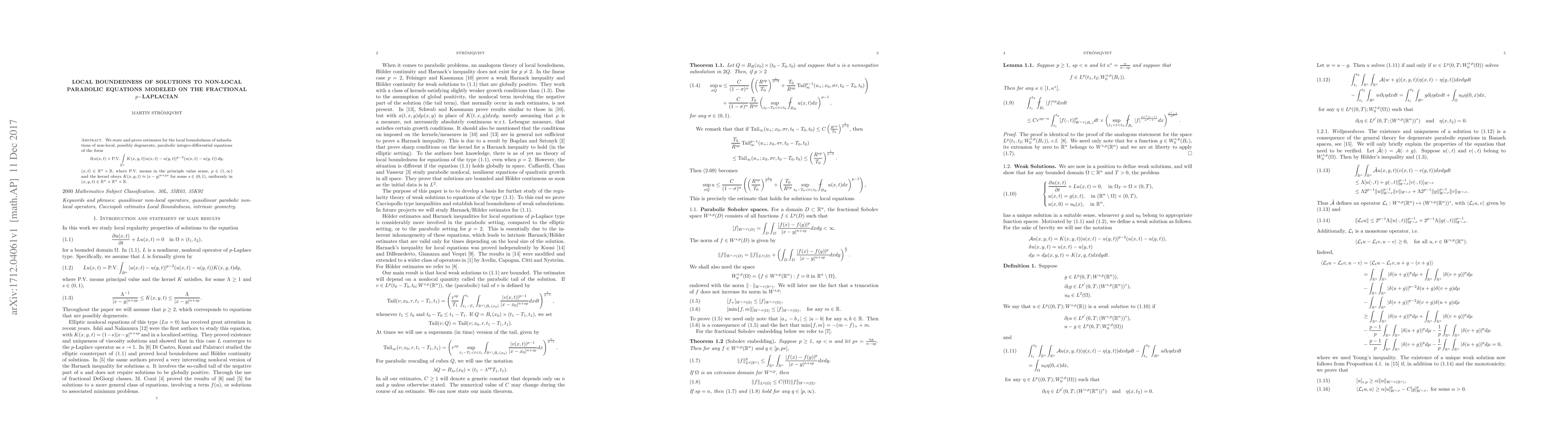We state and prove estimates for the local boundedness of subsolutions of non-local, possibly degenerate, parabolic integro-differential equations of the form \begin{equation*} \partial_tu(x,t)+\mbox{P.V.}\int\limits_{\mathbb R^n}K(x,y,t) |u(x,t)-u(y,t) |^{p-2}(u(x,t)-u(y,t))\, dy,\end{equation*} $(x,t)\in\mathbb R^n\times\mathbb R$, where $\mbox{P.V.} $ means in the principle value sense, $p\in (1,\infty)$ and the kernel obeys $K(x,y,t)\approx |x-y |^{n+ps}$ for some $s\in (0,1)$, uniformly in $(x,y,t)\in\mathbb R^n\times \mathbb R^n\times\mathbb R$.