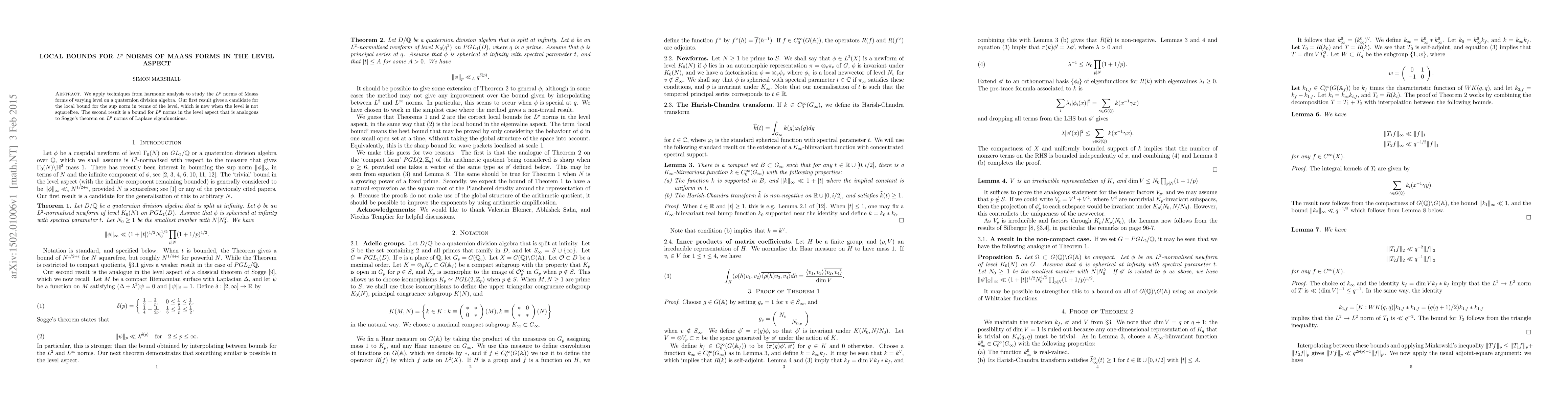 This paper uses harmonic analysis techniques to investigate $L^p$ norms of Maass forms across different levels on a quaternion division algebra, presenting a new local bound for the sup norm when the level is non-squarefree, and establishing a level aspect bound for $L^p$ norms akin to Sogge's theorem for Laplace eigenfunctions.