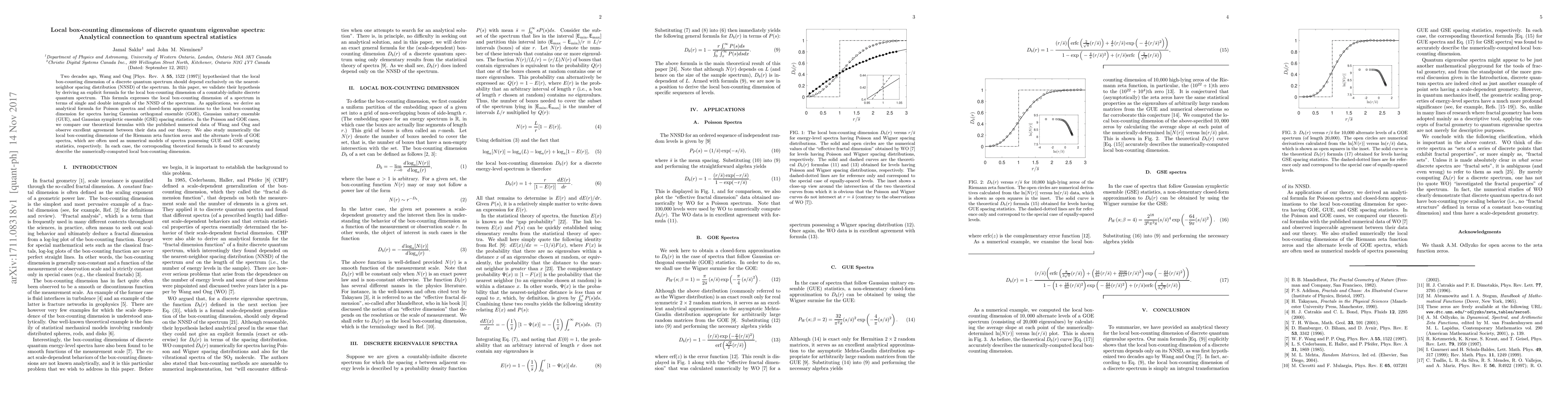 This paper validates the hypothesis that the local box-counting dimension of a discrete quantum spectrum is determined by its nearest-neighbor spacing distribution, providing an explicit formula in terms of integrals of the NNSD. The study applies this formula to Poisson, GOE, GUE, and GSE spectra, showing strong agreement between theoretical results and numerical data.