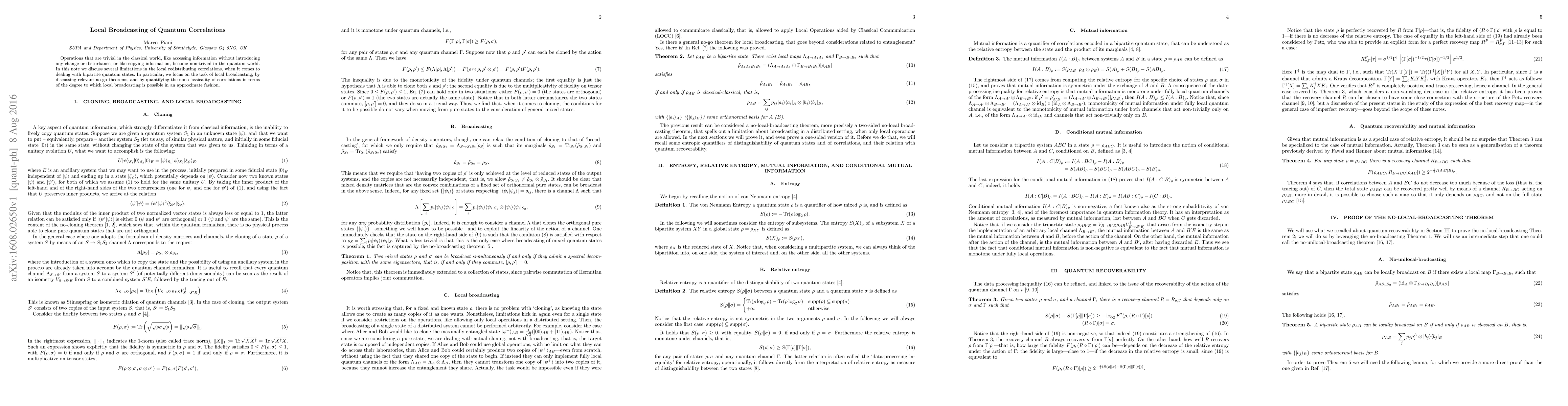 This paper explores the limitations of local broadcasting of quantum correlations in bipartite quantum states, highlighting no-go theorems that prevent perfect local redistribution and quantifying the degree of non-classicality in approximate local broadcasting.