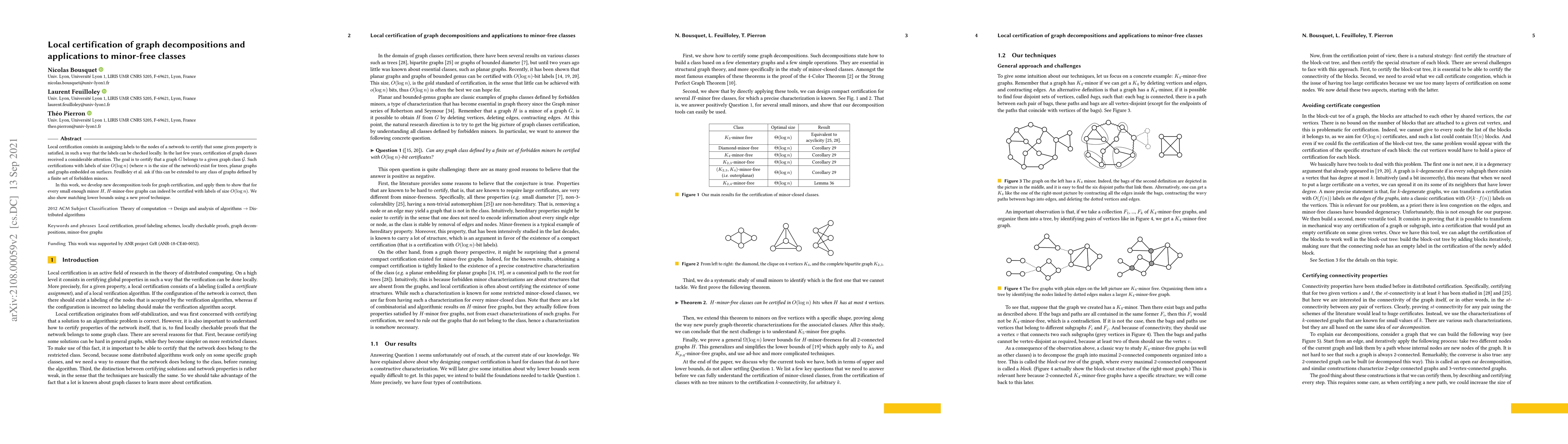 The paper develops new decomposition tools for graph certification, applying them to show that for every small enough minor H, H-minor-free graphs can be certified with labels of size O(log n).