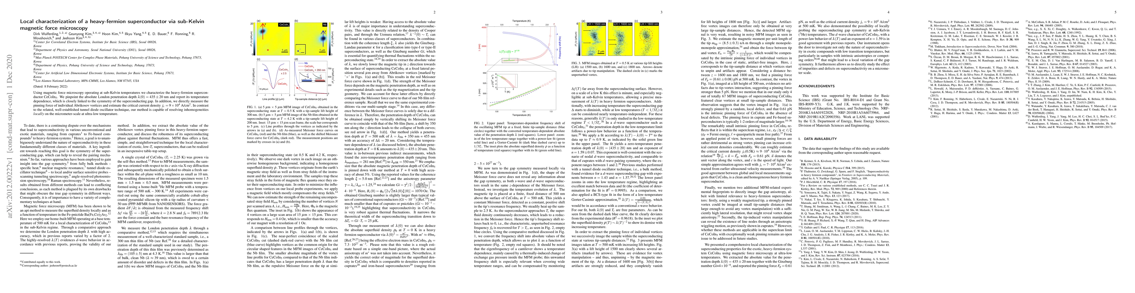 Using magnetic force microscopy operating at sub-Kelvin temperatures we characterize the heavy-fermion superconductor CeCoIn$_5$. We pinpoint the absolute London penetration depth $\lambda(0) = 435 \pm 20$ nm and report its temperature dependence, which is closely linked to the symmetry of the superconducting gap. In addition, we directly measure the pinning force of individual Abrikosov vortices and estimate the critical current density $j_c = 9 \times 10^4$ A/cm$^2$. In contrast to the related, well-established tunnel diode oscillator technique, our method is capable of resolving inhomogeneities $locally$ on the micrometer-scale at ultra-low temperature.