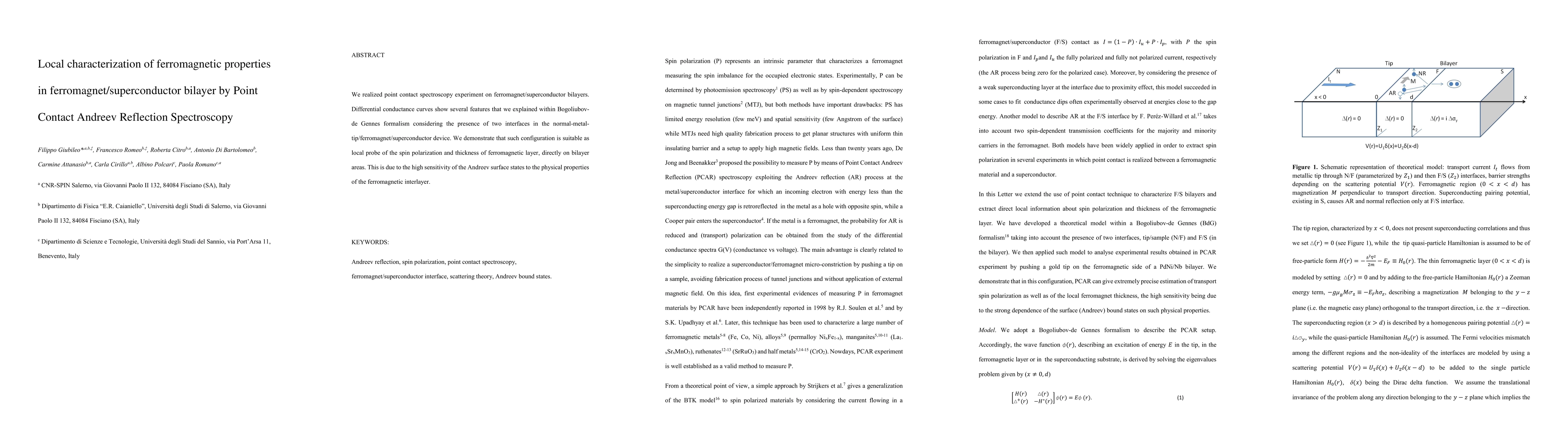 We realized point contact spectroscopy experiment on ferromagnet/superconductor bilayers. Differential conductance curves show several features that we explained within Bogoliubov-de Gennes formalism considering the presence of two interfaces in the normal-metal-tip/ferromagnet/superconductor device. We demonstrate that such configuration is suitable as local probe of the spin polarization and thickness of ferromagnetic layer, directly on bilayer areas. This is due to the high sensitivity of the Andreev surface states to the physical properties of the ferromagnetic interlayer.
