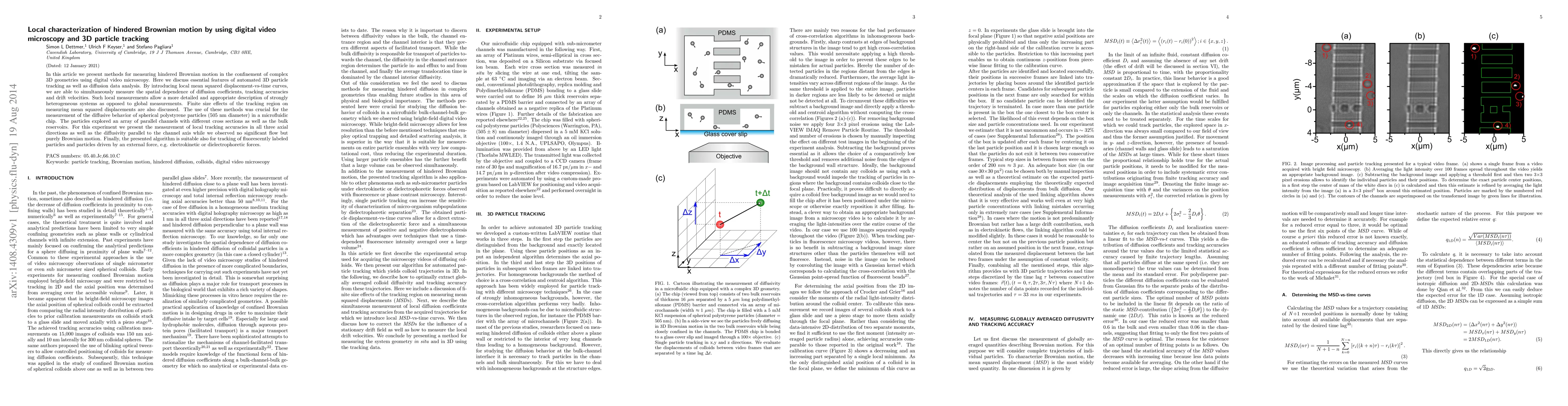 This paper introduces methods for measuring hindered Brownian motion in confined 3D geometries using digital video microscopy and 3D particle tracking, focusing on local mean squared displacement-vs-time curves to analyze spatial diffusion dependencies. The study demonstrates the technique's effectiveness in tracking polystyrene particles in microfluidic channels, highlighting local tracking accuracies and diffusivity.