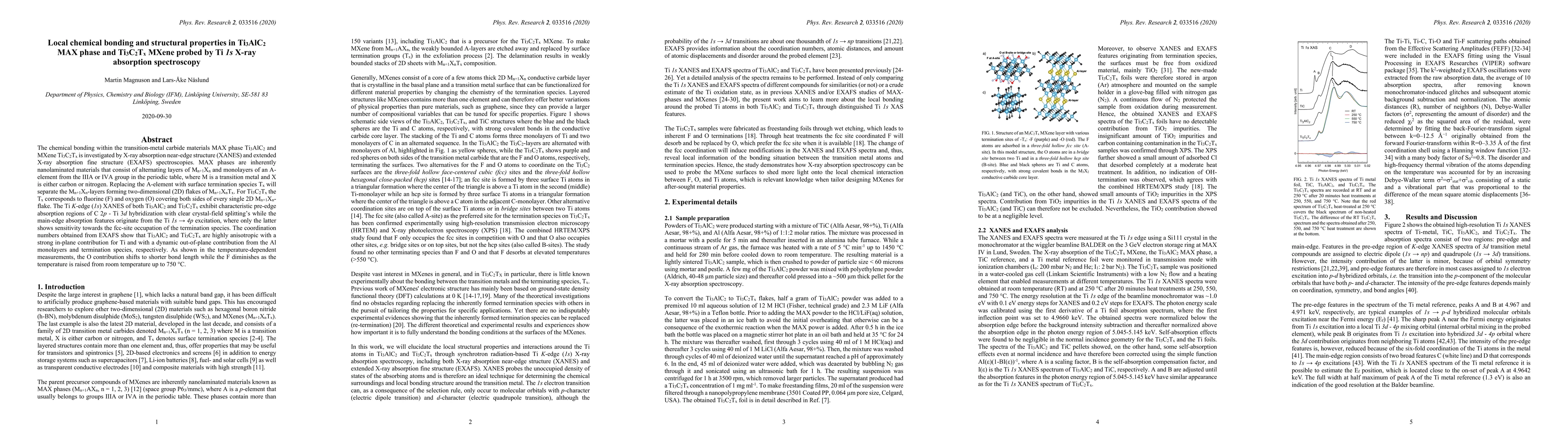 The chemical bonding within the transition-metal carbide materials MAX phase Ti3AlC2 and MXene Ti3C2Tx is investigated by X-ray absorption near-edge structure (XANES) and extended X-ray absorption fine structure (EXAFS) spectroscopies. MAX phases are inherently nanolaminated materials that consist of alternating layers of Mn+1Xn and monolayers of an A-element from the IIIA or IVA group in the periodic table, where M is a transition metal and X is either carbon or nitrogen. Replacing the A-element with surface termination species Tx will separate the Mn+1Xn-layers forming two-dimensional (2D) flakes of Mn+1XnTx. For Ti3C2Tx the Tx corresponds to fluorine (F) and oxygen (O) covering both sides of every single 2D Mn+1Xn-flake. The Ti K-edge (1s) XANES of both Ti3AlC2 and Ti3C2Tx exhibit characteristic pre-edge absorption regions of C 2p - Ti 3d hybridization with clear crystal-field splitting's while the main-edge absorption features originate from the Ti 1s -> 4p excitation, where only the latter shows sensitivity towards the fcc-site occupation of the termination species. The coordination numbers obtained from EXAFS show that Ti3AlC2 and Ti3C2Tx are highly anisotropic with a strong in-plane contribution for Ti and with a dynamic out-of-plane contribution from the Al monolayers and termination species, respectively. As shown in the temperature-dependent measurements, the O contribution shifts to shorter bond length while the F diminishes as the temperature is raised from room temperature up to 750 {\deg}C.