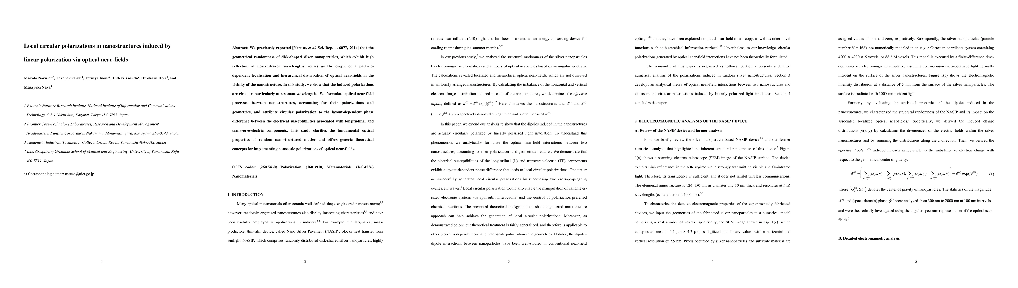 This paper investigates how linear polarization induces circular polarizations in nanostructures via optical near-fields, attributing the phenomenon to the layout-dependent phase difference between electrical susceptibilities. The study provides theoretical insights into the fundamental optical properties of random nanostructured materials.