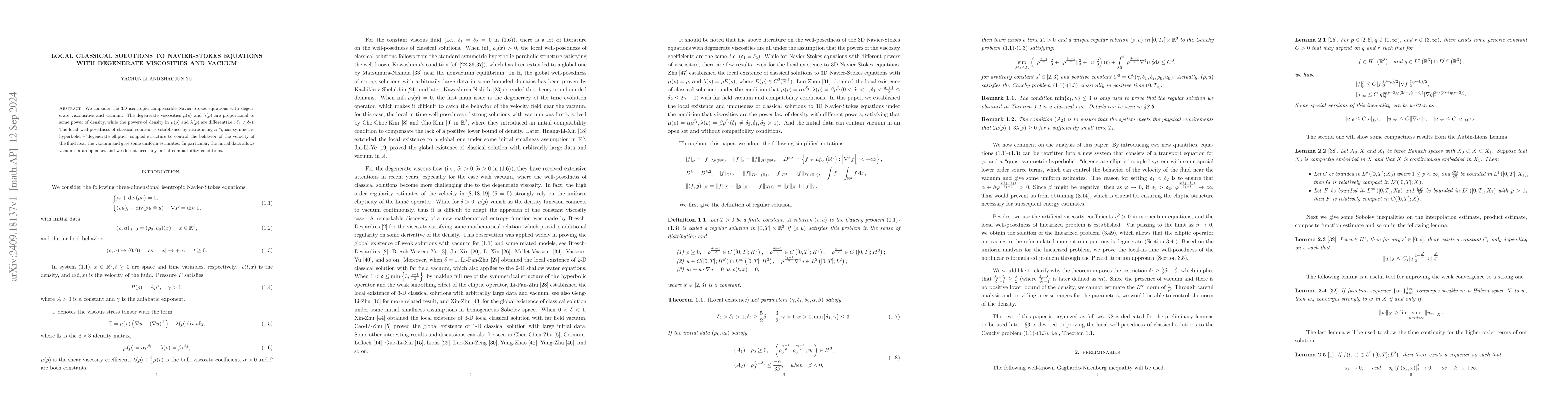 We consider the 3D isentropic compressible Navier-Stokes equations with degenerate viscousities and vacuum. The degenerate viscosities $\mu(\rho)$ and $\lambda(\rho)$ are proportional to some power of density, while the powers of density in $\mu(\rho)$ and $\lambda(\rho)$ are different(i.e., $\delta_1\neq \delta_2$). The local well-posedness of classical solution is established by introducing a ``quasi-symmetric hyperbolic''--``degenerate elliptic'' coupled structure to control the behavior of the velocity of the fluid near the vacuum and give some uniform estimates. In particular, the initial data allows vacuum in an open set and we do not need any initial compatibility conditions.