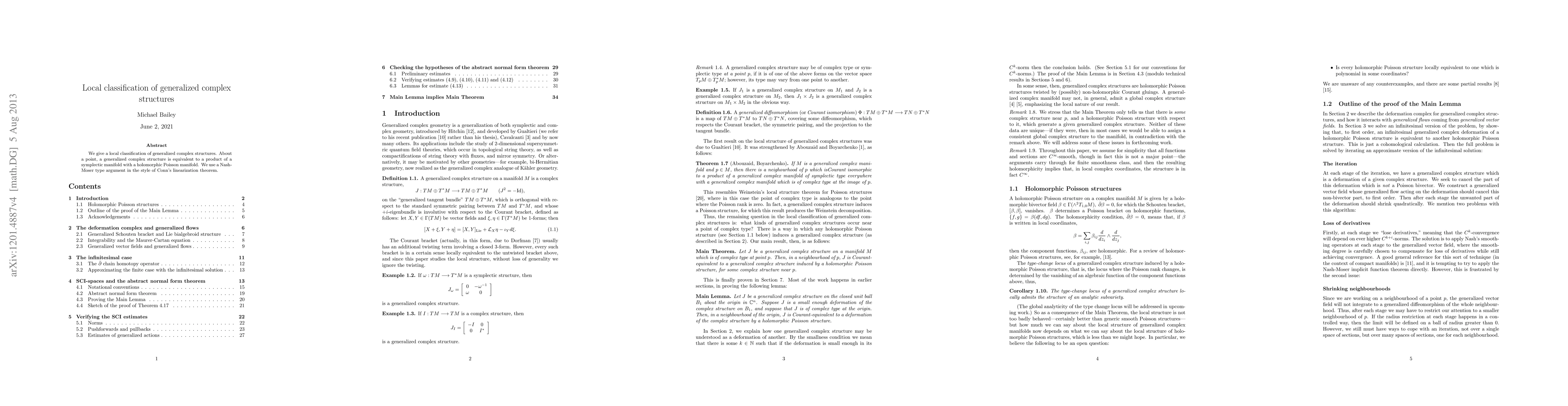 This paper presents a local classification of generalized complex structures, showing they are locally equivalent to a product of a symplectic manifold and a holomorphic Poisson manifold, using a Nash-Moser argument inspired by Conn's linearization theorem.