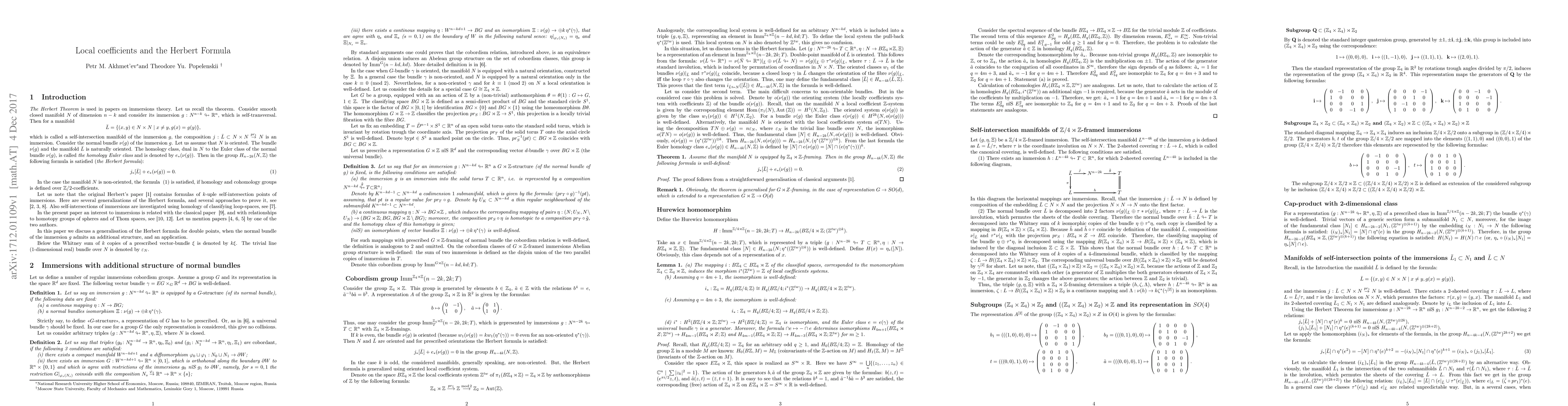 We discuss a generalisation of the Herbert formula for double points, when the normal bundle of an immersion admits an additional structure, and an application.