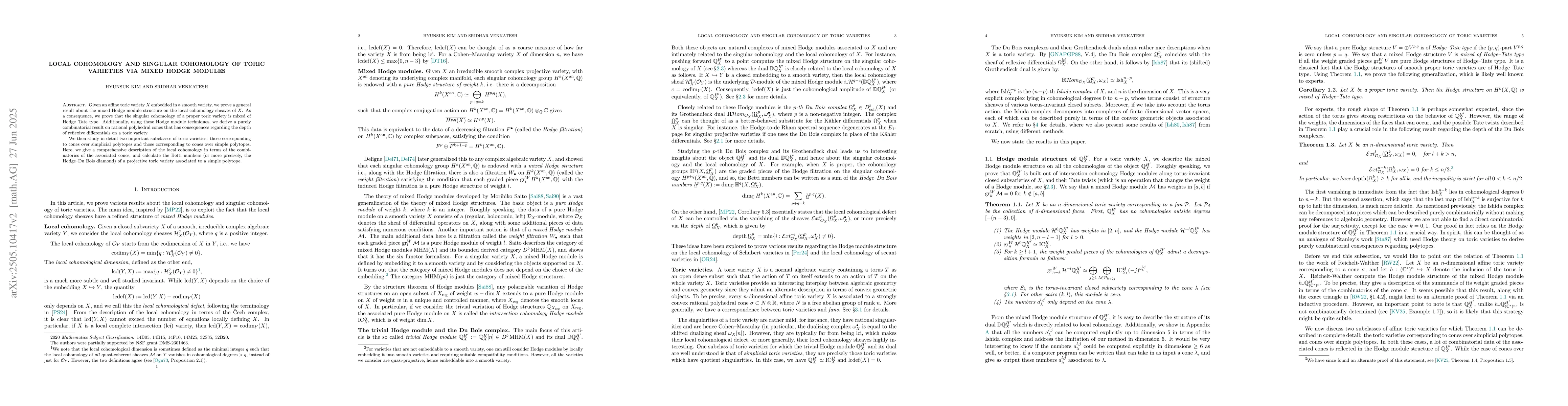The paper employs mixed Hodge module techniques to study local cohomology sheaves of affine toric varieties embedded in smooth varieties.
