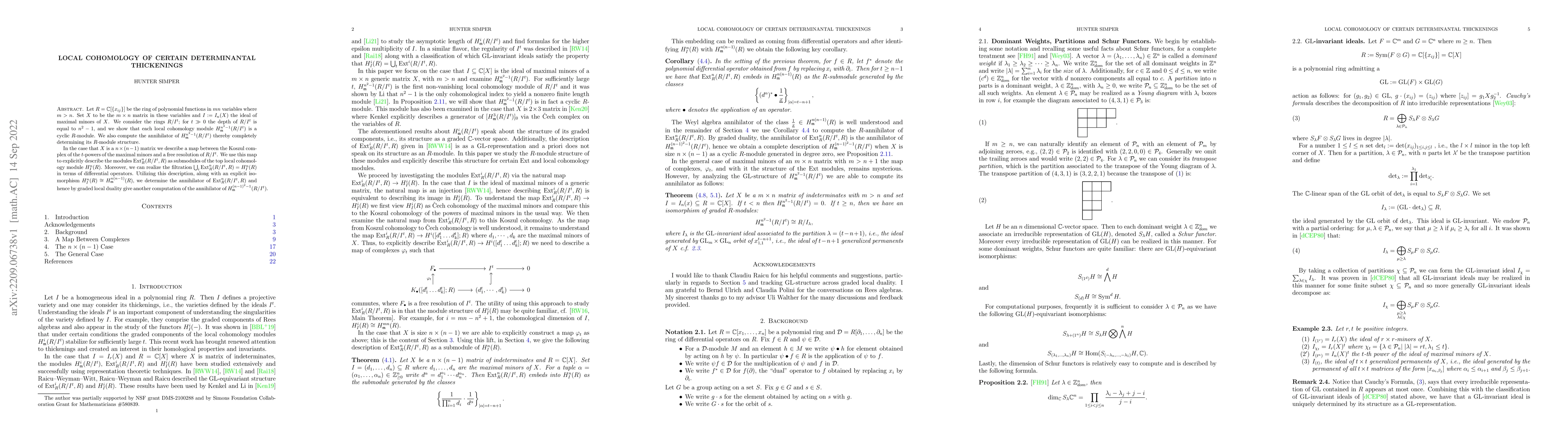This paper investigates the local cohomology of determinantal thickenings, proving that for $R=\mathbb{C}[\{x_{ij}\}]$ and $I$ the ideal of maximal minors of an $m\times n$ matrix, each local cohomology module $H^{n^2-1}_{\frak{m}}(R/I^t)$ is cyclic. It also computes the annihilator of these modules, determining their $R$-module structure.