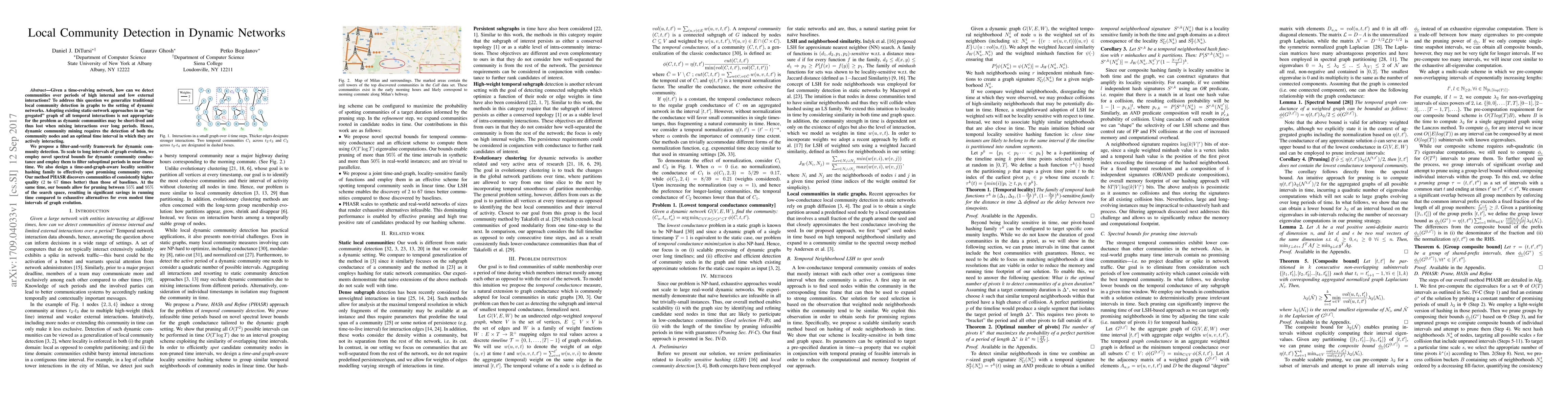 This paper proposes a method for detecting local communities in dynamic networks by identifying optimal time intervals for active interactions. The PHASR framework uses spectral bounds and locality-sensitive hashing to efficiently discover high-quality communities while pruning up to 95% of the search space for significant time savings.