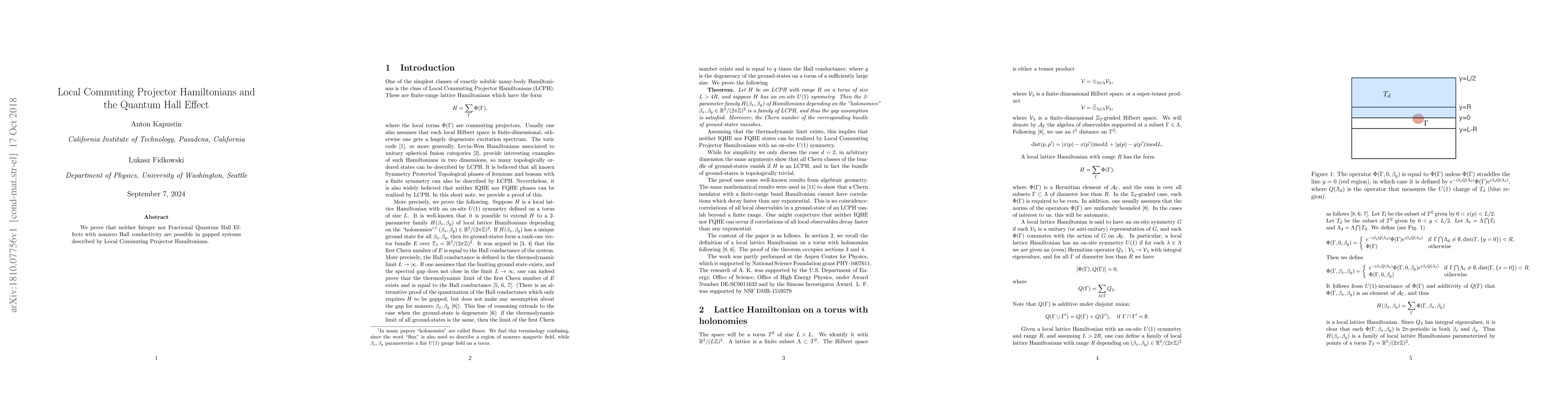 Summary: The study demonstrates that gapped systems governed by Local Commuting Projector Hamiltonians cannot exhibit Integer or Fractional Quantum Hall Effects with nonzero Hall conductivity. This finding constrains the applicability of such Hamiltonians in quantum Hall physics.