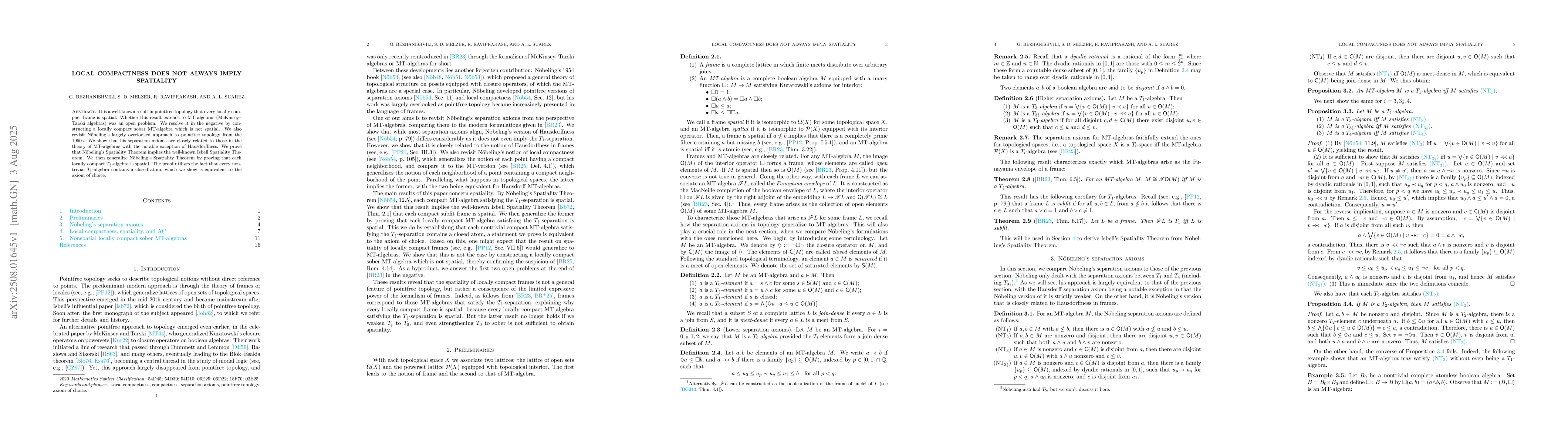 It is a well-known result in pointfree topology that every locally compact frame is spatial. Whether this result extends to MT-algebras (McKinsey-Tarski algebras) was an open problem. We resolve it in the negative by constructing a locally compact sober MT-algebra which is not spatial. We also revisit N\"obeling's largely overlooked approach to pointfree topology from the 1950s. We show that his separation axioms are closely related to those in the theory of MT-algebras with the notable exception of Hausdorffness. We prove that N\"obeling's Spatiality Theorem implies the well-known Isbell Spatiality Theorem. We then generalize N\"obeling's Spatiality Theorem by proving that each locally compact $T_{1/2}$-algebra is spatial. The proof utilizes the fact that every nontrivial $T_{1/2}$-algebra contains a closed atom, which we show is equivalent to the axiom of choice.