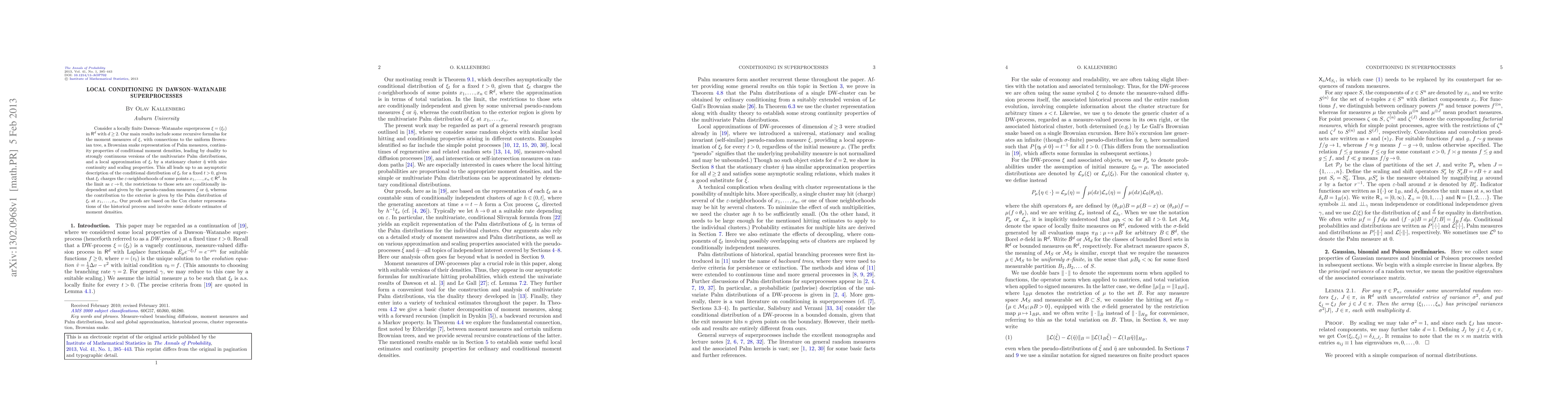 This paper explores local conditioning in Dawson-Watanabe superprocesses, deriving recursive formulas for moment measures and establishing connections to the uniform Brownian tree. It provides an asymptotic description of the conditional distribution of the superprocess, showing that the local behavior converges to pseudo-random measures while the exterior follows the Palm distribution.