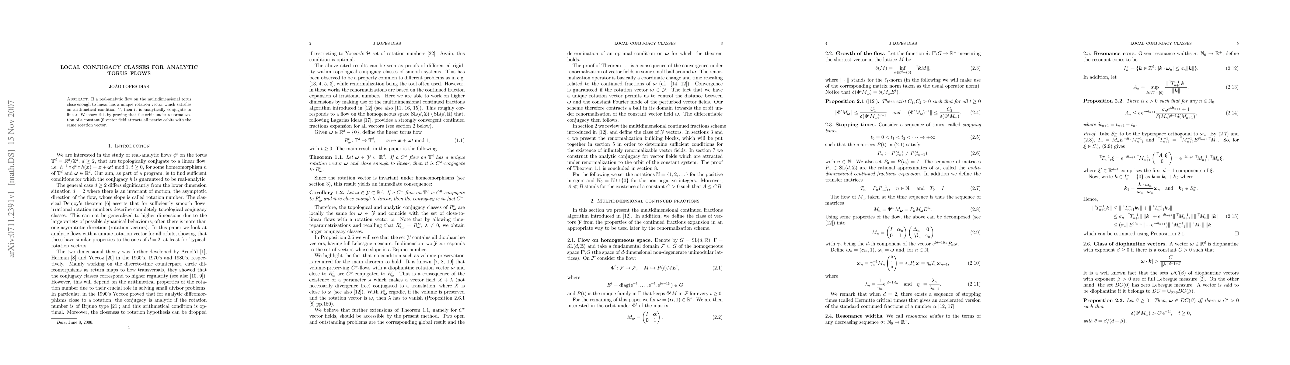 If a real-analytic flow on the multidimensional torus close enough to linear has a unique rotation vector which satisfies an arithmetical condition Y, then it is analytically conjugate to linear. We show this by proving that the orbit under renormalization of a constant Y vector field attracts all nearby orbits with the same rotation vector.
