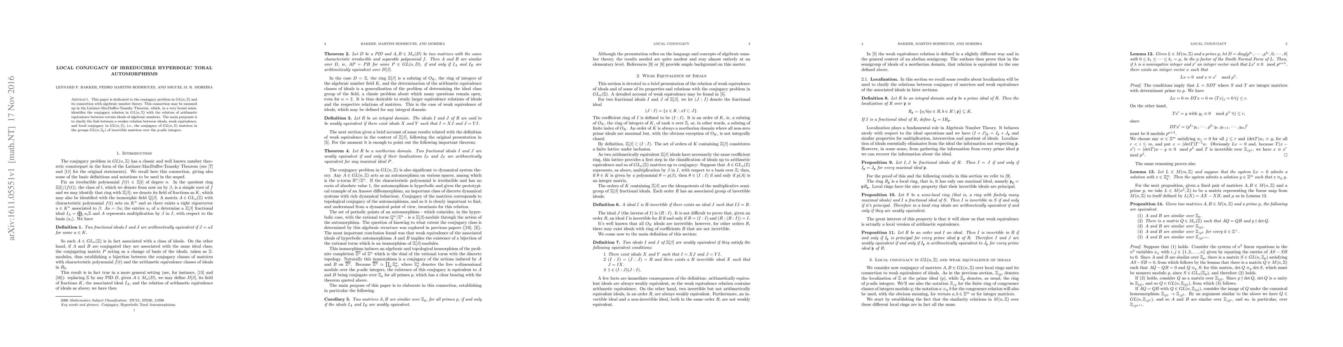 This paper is dedicated to the conjugacy problem in $GL(n,\Z)$ and its connection with algebraic number theory. This connection may be summed up in the Latimer-MacDuffee-Taussky Theorem, which, in a very broad sense, identifies the conjugacy relation in $GL(n,\Z)$ with the relation of arithmetic equivalence between certain ideals of algebraic numbers. The main purpouse is to clarify the link between a weaker relation between ideals, weak equivalence, and local conjugacy in $GL(n,\Z)$, i.e., the conjugacy of $GL(n,\Z)$ matrices in the groups $GL(n,\Z_{p})$ of invertible matrices over the $p$-adic integers.