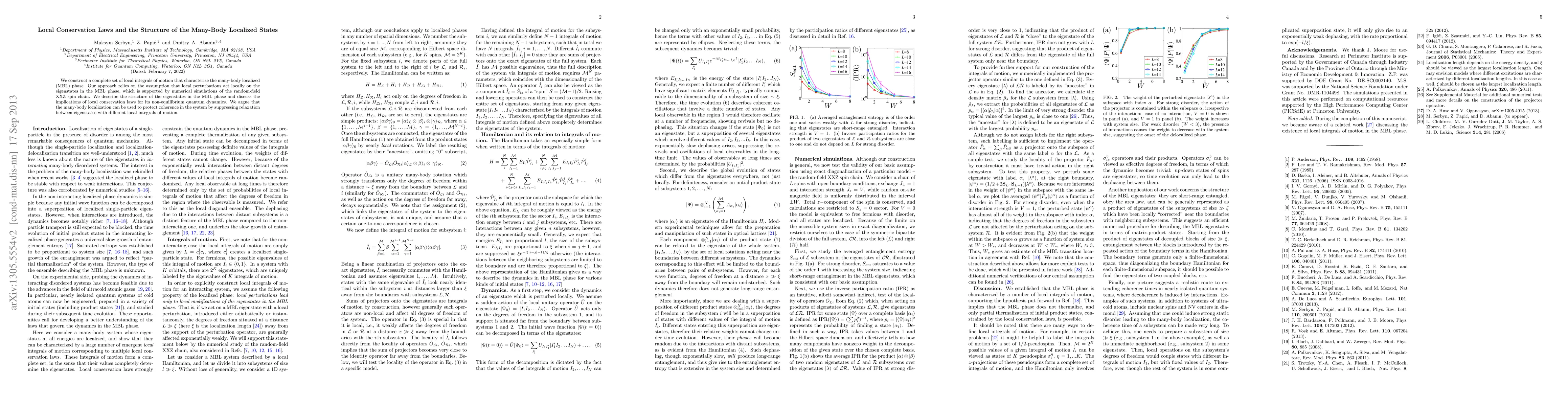 This paper constructs a set of local integrals of motion to characterize the many-body localized (MBL) phase, supported by numerical simulations of the random-field XXZ spin chain. The study highlights how local conservation laws protect coherence in the MBL phase by suppressing relaxation between eigenstates with different local integrals of motion.