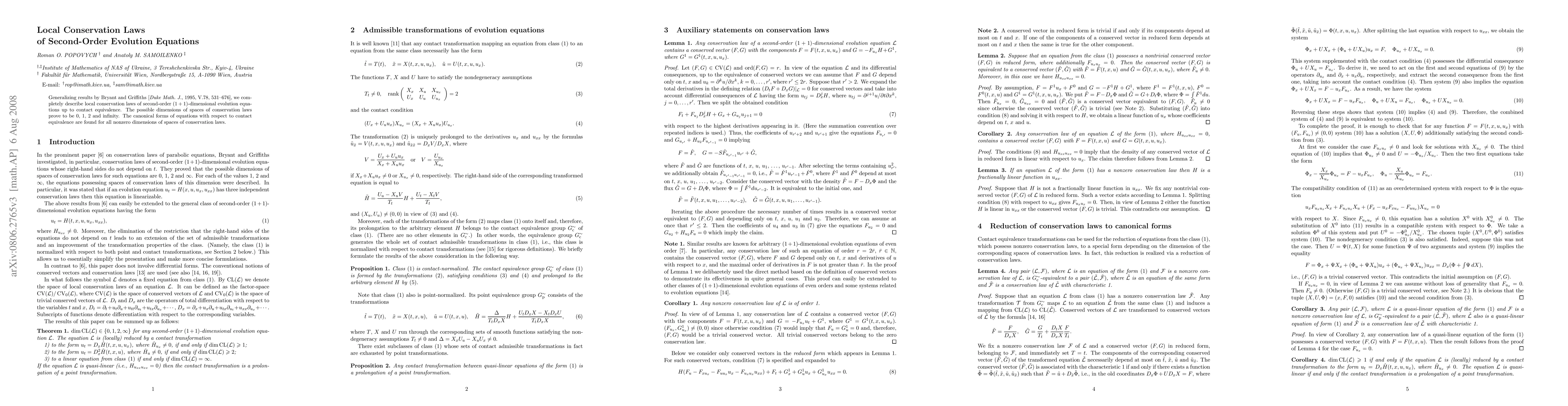 This paper generalizes earlier work to provide a comprehensive description of local conservation laws for second-order (1+1)-dimensional evolution equations, identifying possible dimensions of conservation law spaces and determining canonical forms under contact equivalence for all nonzero dimensions.