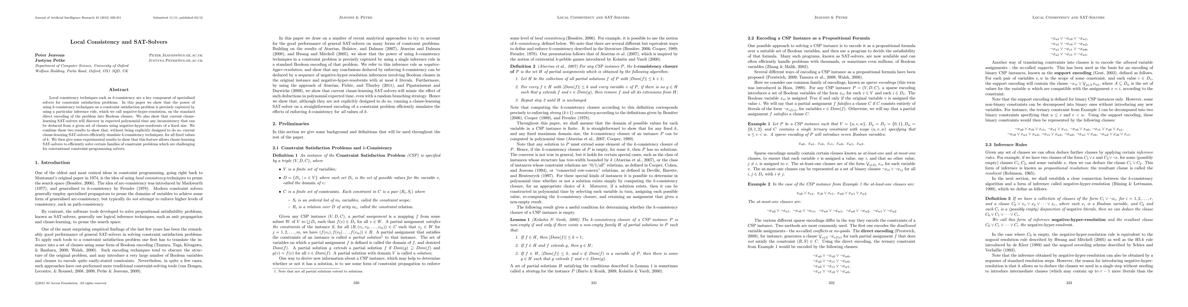 This paper demonstrates that clause-learning SAT-solvers can implicitly simulate k-consistency techniques by employing a specific inference rule, negative-hyper-resolution, thus efficiently solving constraint satisfaction problems that are difficult for conventional constraint solvers. Experimental results show improved performance on certain challenging constraint problems.