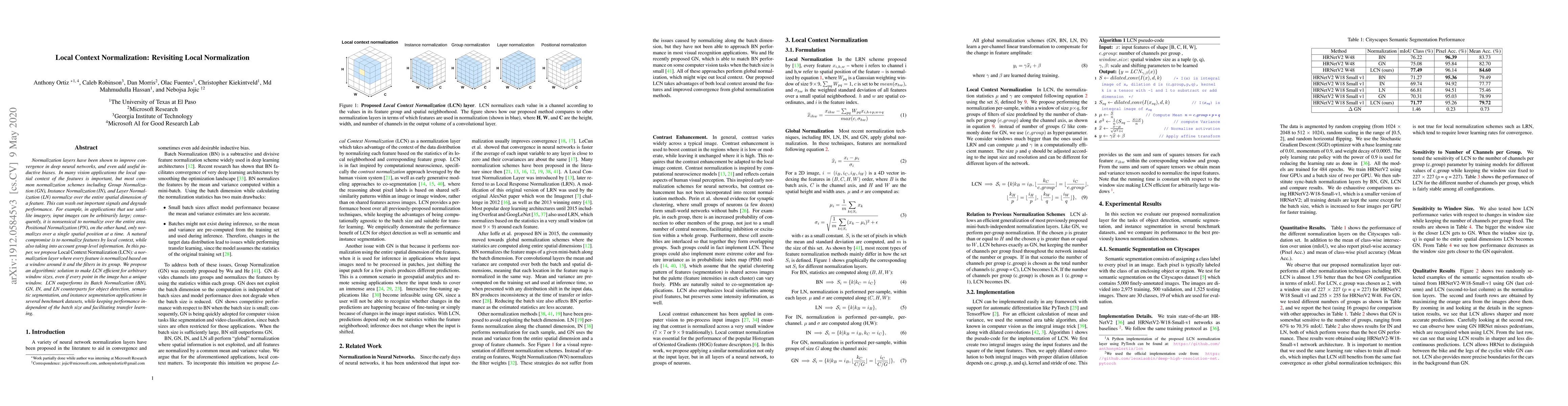 This paper proposes Local Context Normalization (LCN), a new normalization layer that normalizes features based on a local window and group-level information, outperforming traditional normalization methods in tasks like object detection and segmentation. LCN maintains performance independence from batch size and enhances transfer learning.