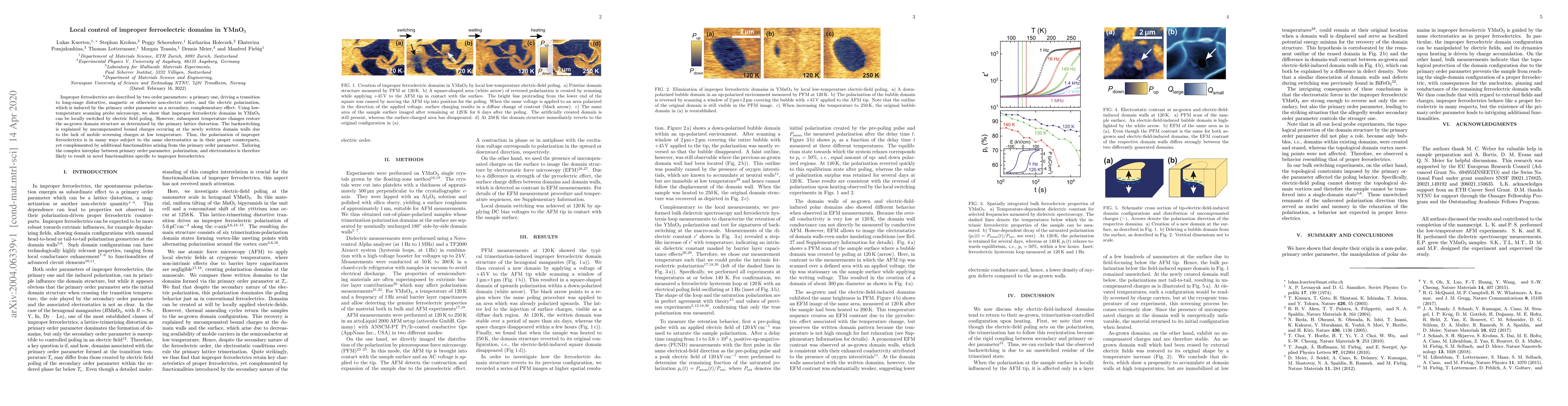 Researchers found that improper ferroelectric domains in YMnO3 can be locally switched using electric fields, but temperature changes restore the original domain structure. This process involves bound charges at newly written domain walls and has implications for novel functionalities in improper ferroelectrics.
