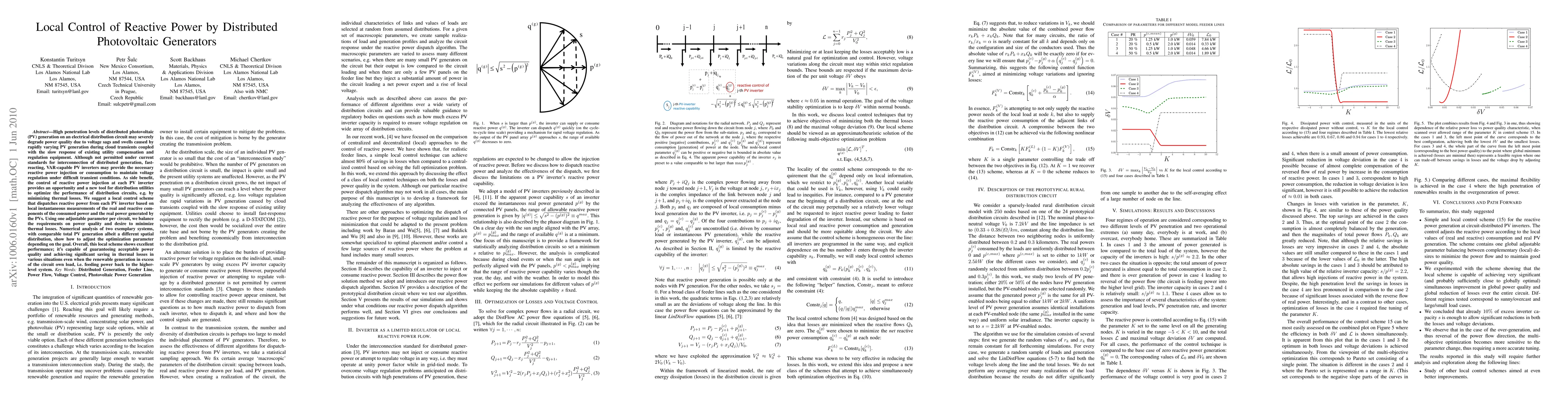 This paper proposes a local control scheme for distributed photovoltaic (PV) generators to manage reactive power and maintain voltage regulation, thereby improving power quality and minimizing thermal losses. The scheme uses local measurements to dispatch reactive power from each PV inverter, balancing power quality and loss minimization with a single adjustable parameter.