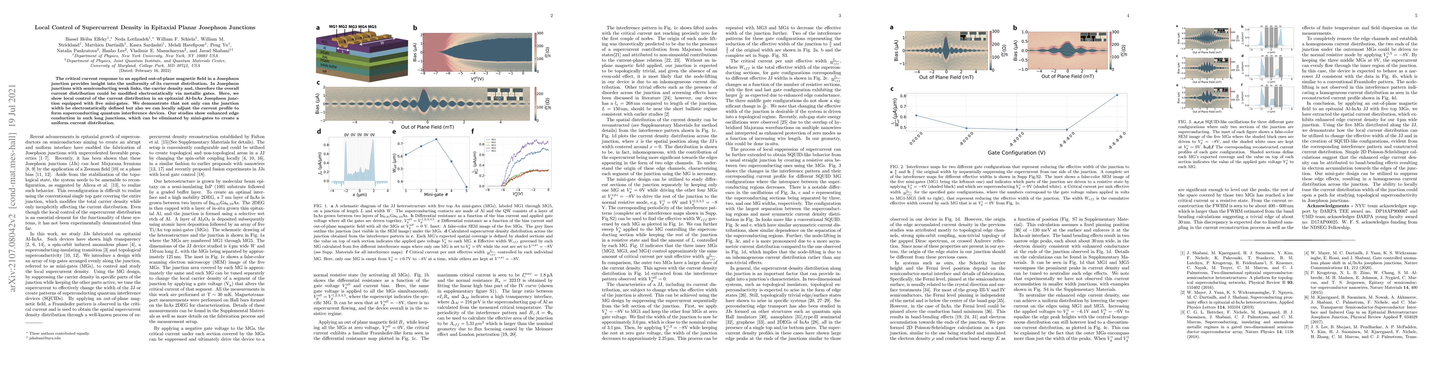 This paper demonstrates local control over the current distribution in epitaxial Al-InAs Josephson junctions using metallic gates, showing enhanced edge conduction that can be mitigated to achieve a uniform current profile for superconducting quantum interference devices.