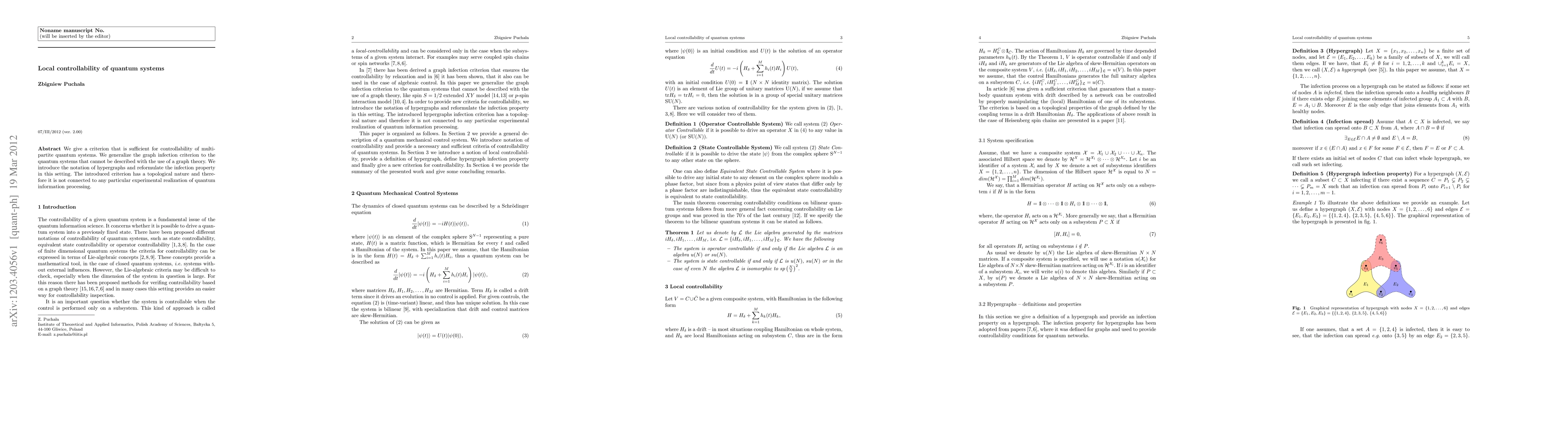 This paper presents a criterion for the local controllability of multipartite quantum systems, generalizing the graph infection criterion to systems beyond graph theory. It introduces hypergraphs and reformulates the infection property, providing a topological criterion independent of specific experimental setups.