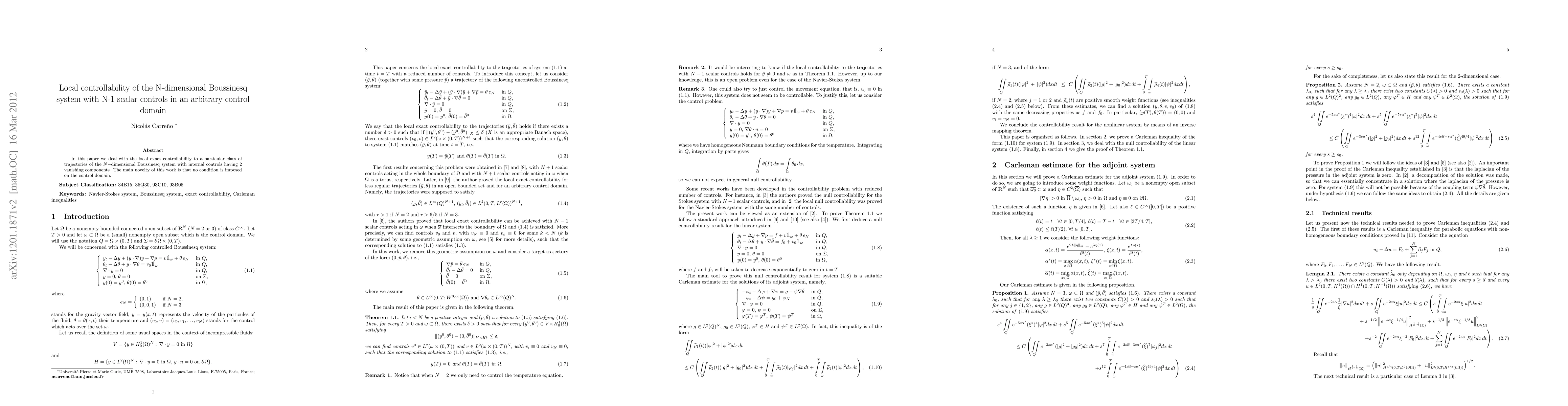 This paper investigates local exact controllability of the N-dimensional Boussinesq system with N-1 scalar controls, demonstrating controllability without imposing any restrictions on the control domain. The study focuses on achieving control to a specific trajectory class.