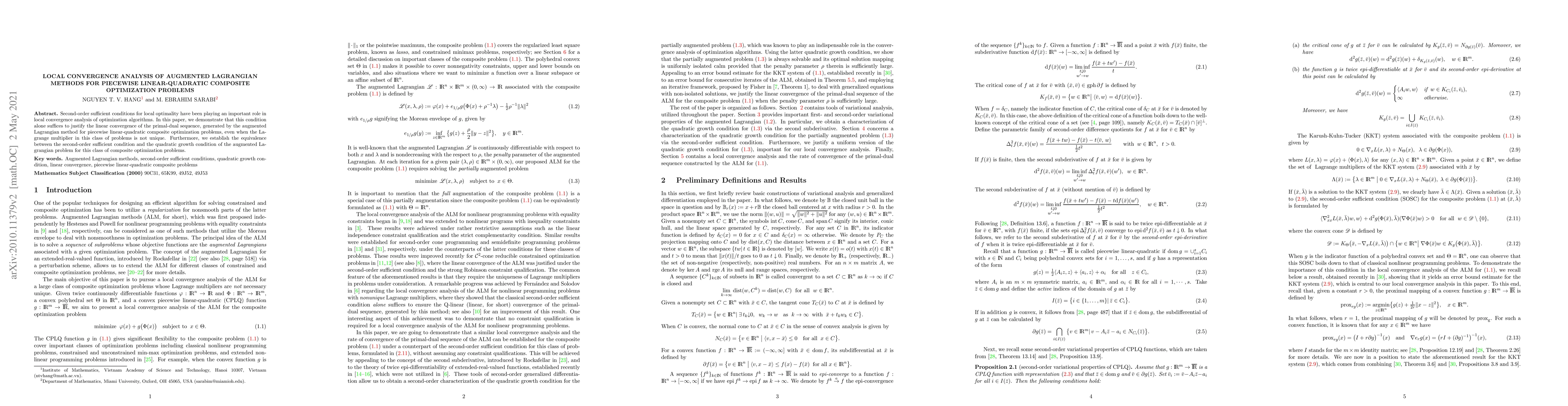 Second-order sufficient conditions for local optimality have been playing an important role in local convergence analysis of optimization algorithms. In this paper, we demonstrate that this condition alone suffices to justify the linear convergence of the primal-dual sequence, generated by the augmented Lagrangian method for piecewise linear-quadratic composite optimization problems, even when the Lagrange multiplier in this class of problems is not unique. Furthermore, we establish the equivalence between the second-order sufficient condition and the quadratic growth condition of the augmented Lagrangian problem for this class of composite optimization problems.
