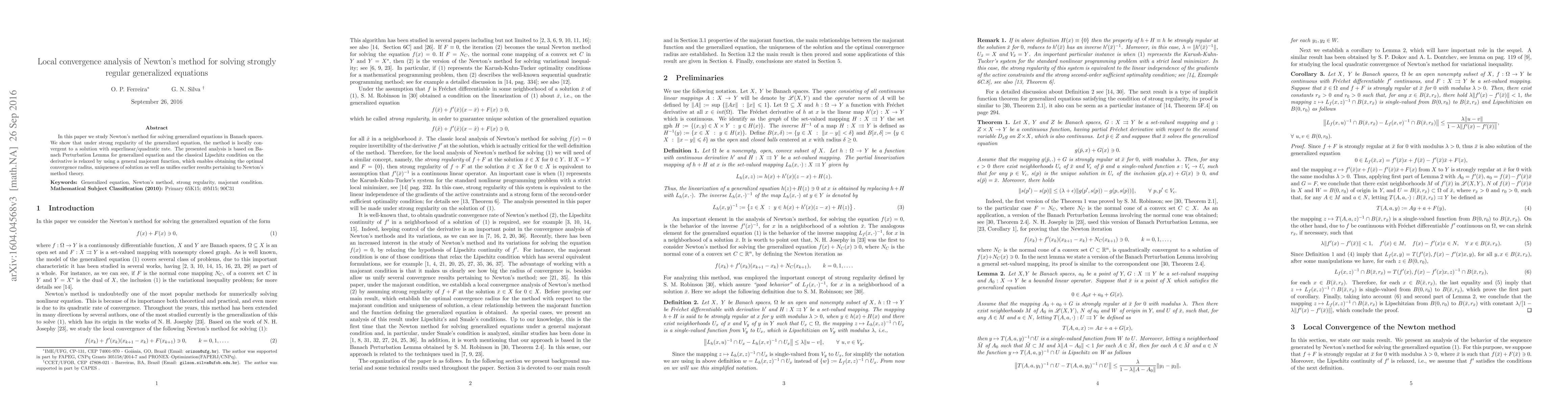 This paper analyzes Newton's method for solving strongly regular generalized equations in Banach spaces, demonstrating local convergence to a solution with superlinear/quadratic rate, achieved through a generalized perturbation lemma and a relaxed Lipschitz condition using a majorant function.