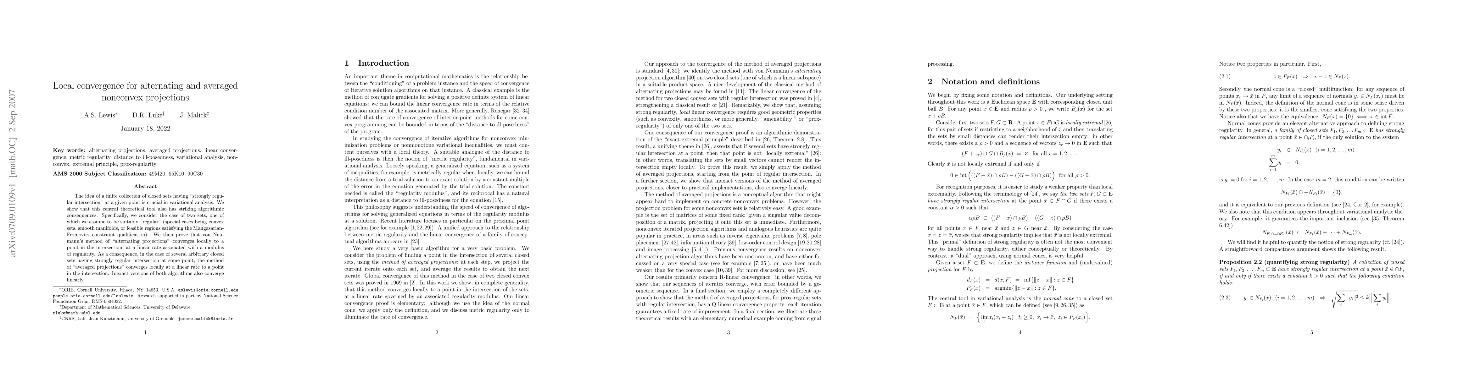 This paper demonstrates that the concept of "strongly regular intersection" in variational analysis leads to local linear convergence for both alternating and averaged projection methods, even for nonconvex sets, under certain regularity conditions. The study extends these results to inexact versions of the algorithms.