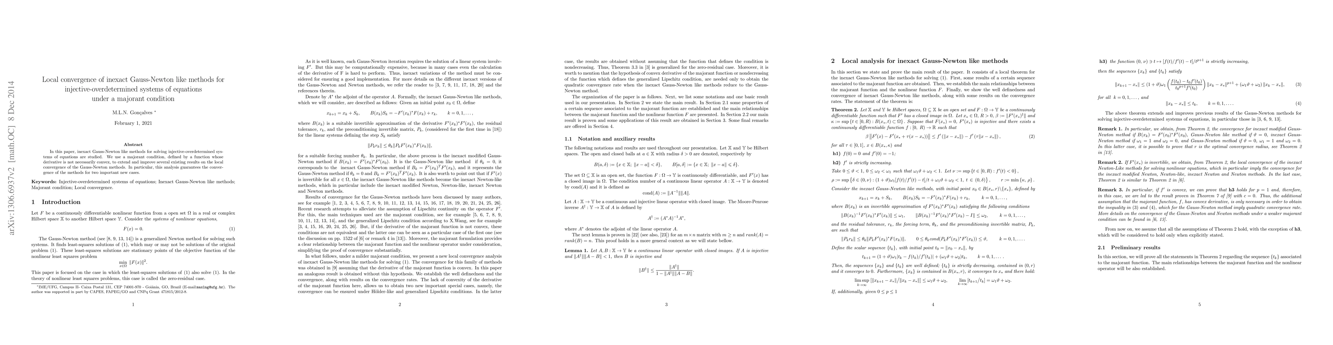 This paper investigates inexact Gauss-Newton like methods for solving injective-overdetermined systems of equations, extending existing convergence results using a non-convex majorant condition. The analysis ensures local convergence for two previously unaddressed cases.