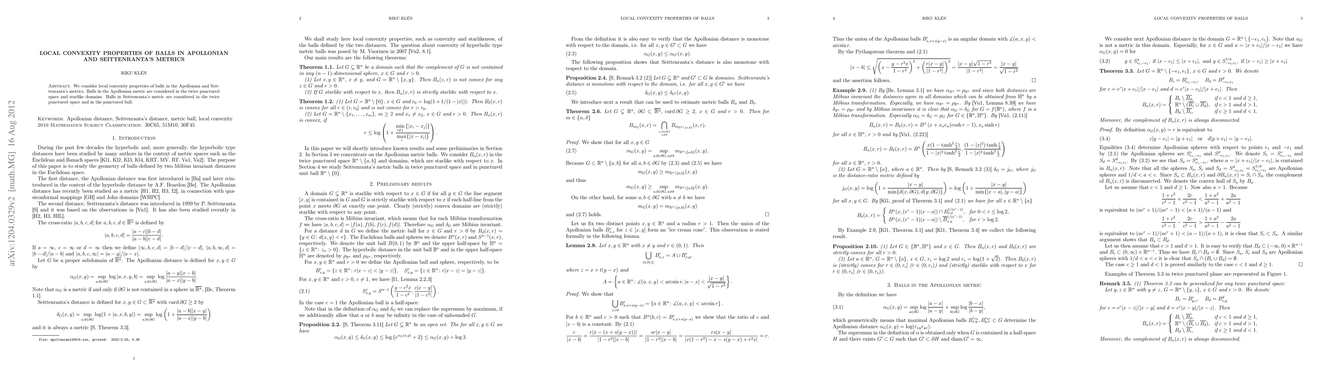 We consider local convexity properties of balls in the Apollonian and Seittenranta's metrics. Balls in the Apollonian metric are considered in the twice punctured space and starlike domains. Balls in Seittenranta's metric are considered in the twice punctured space and in the punctured ball.