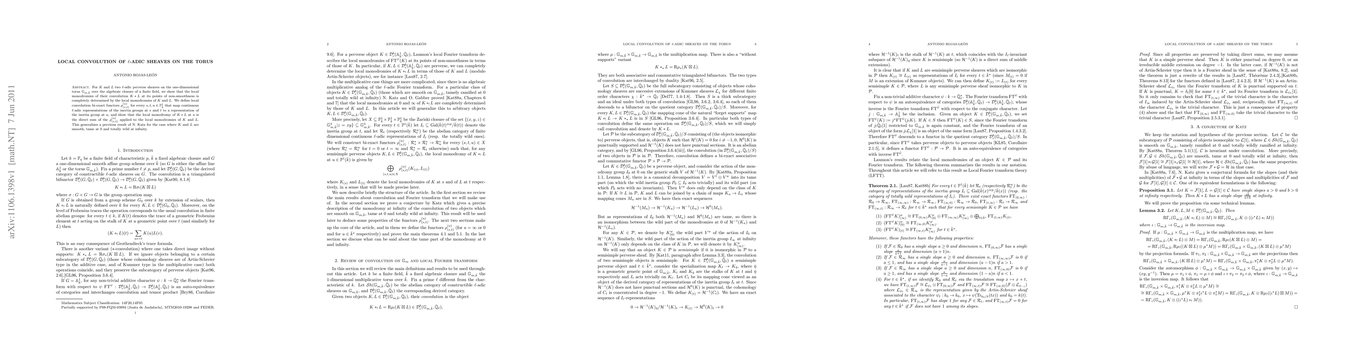 This paper demonstrates that the local monodromies of the convolution of two l-adic perverse sheaves on the one-dimensional torus are entirely determined by the local monodromies of the individual sheaves, generalizing a prior result by N. Katz for smooth, tame cases.