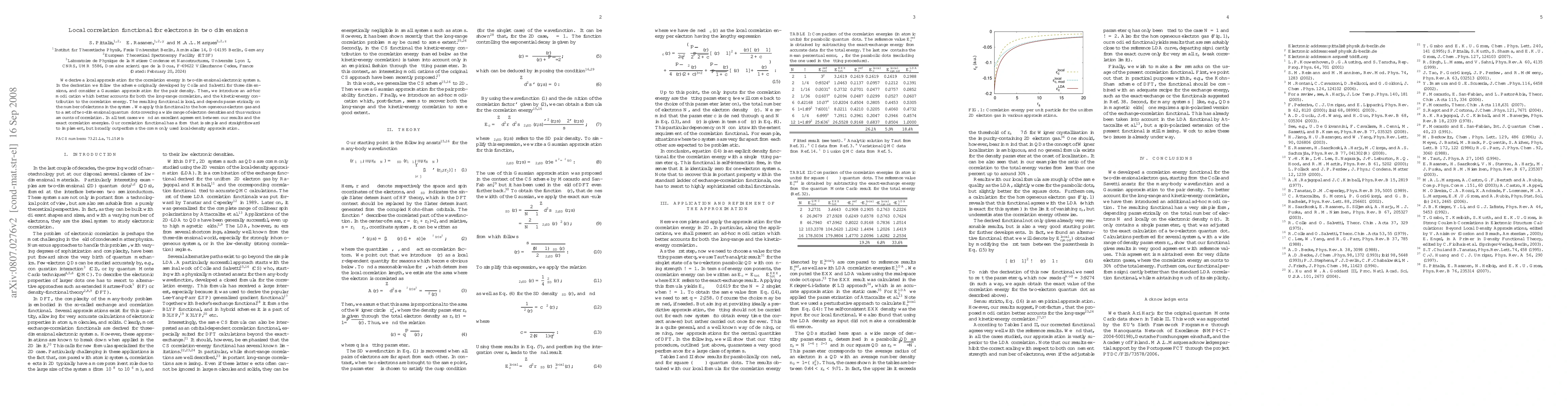 This paper develops a local correlation functional for two-dimensional electronic systems, adapting a method from three dimensions and enhancing it for long-range correlation and kinetic energy. The new functional shows excellent agreement with exact correlation energies in various test cases, outperforming the local-density approximation.