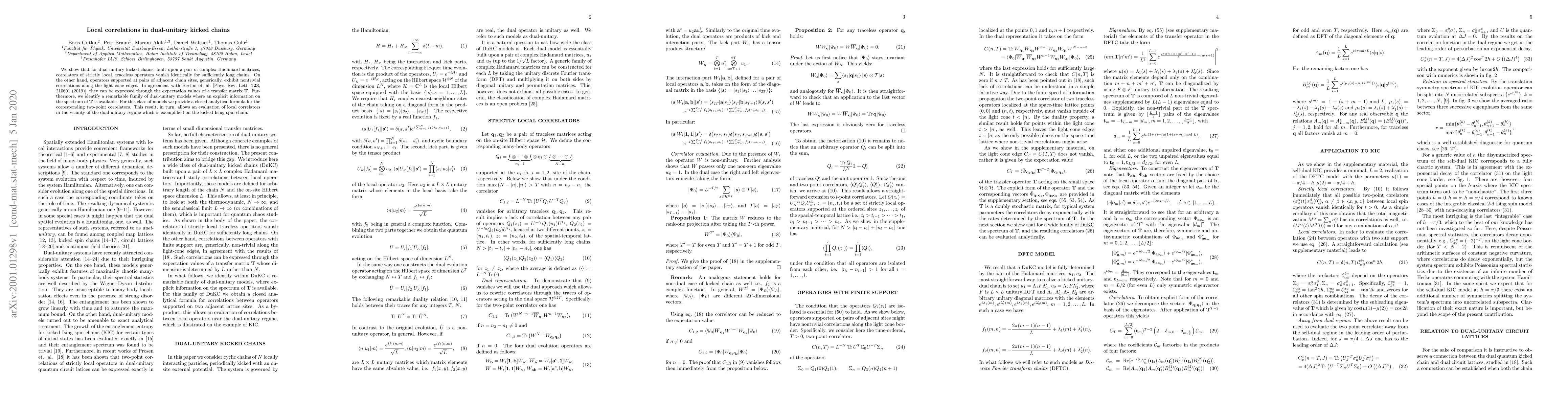 For dual-unitary kicked chains, long-range correlations vanish for strictly local operators, while correlations along light cone edges exhibit nontrivial behavior that can be expressed through transfer matrix expectation values.