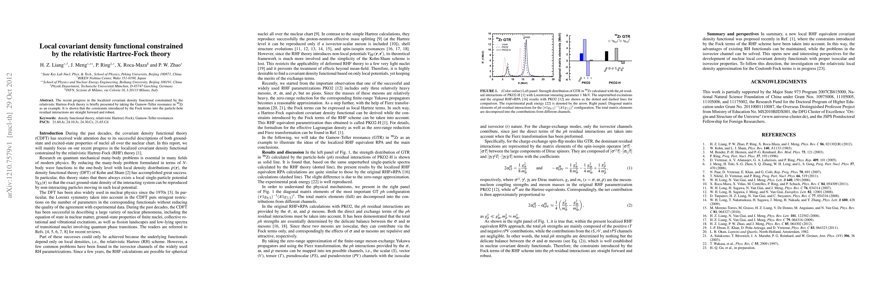 Summary: This paper discusses the localized covariant density functional theory constrained by relativistic Hartree-Fock, exemplified by the Gamow-Teller resonance in 90Zr, demonstrating that Fock term constraints enhance the robustness of particle-hole interactions.
