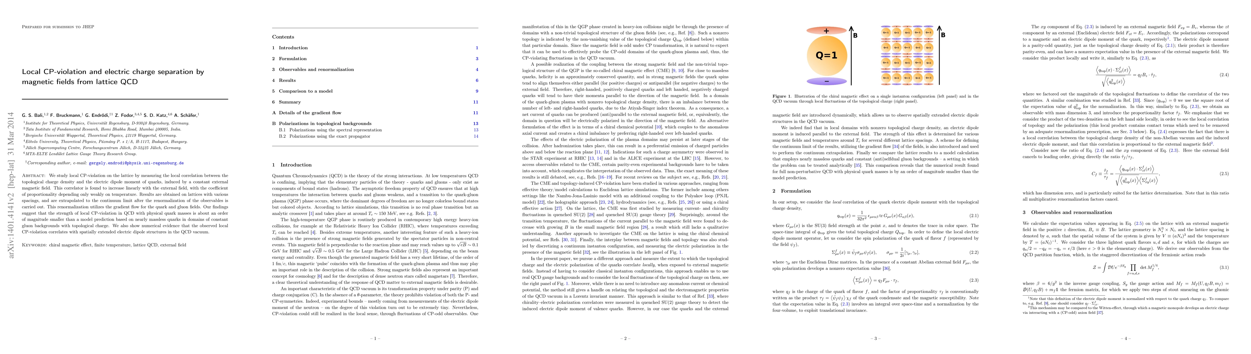 A study of lattice QCD finds that external magnetic fields induce local CP-violation in quarks, which increases linearly with the field strength, with weaker dependence on temperature. This effect is an order of magnitude smaller than predicted for nearly massless quarks.