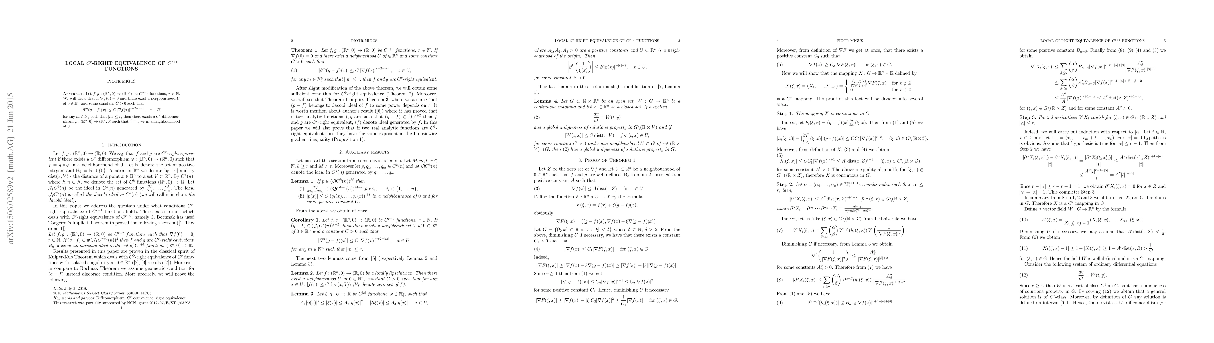 Researchers show that if two $C^{r+1}$ functions differ only by a $C^r$ diffeomorphism near the origin, then they can be made equal in a neighbourhood of the origin under certain conditions.