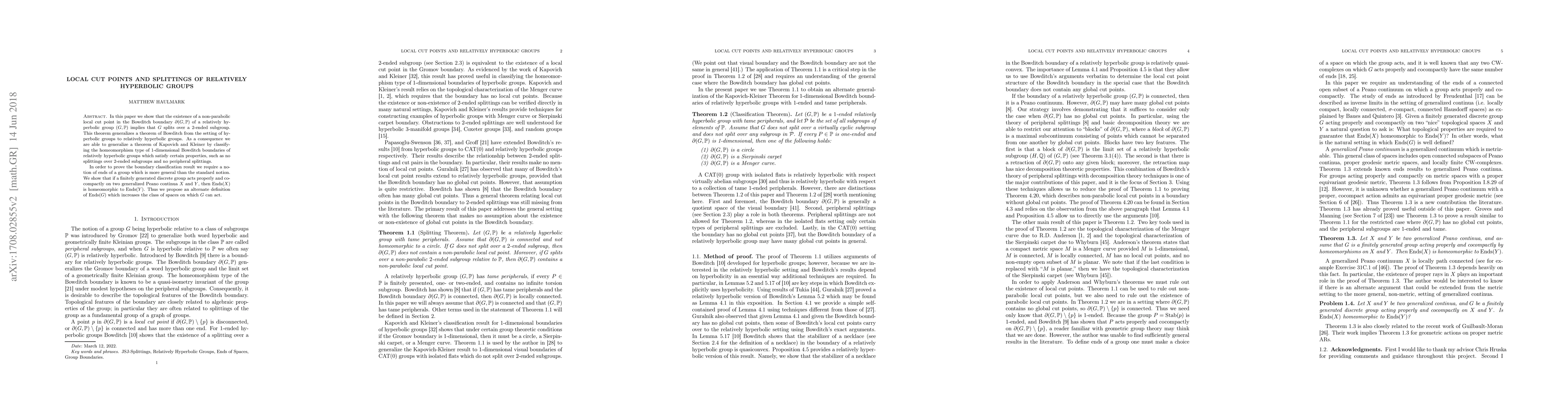 This paper proves that a non-parabolic local cut point in the Bowditch boundary of a relatively hyperbolic group implies the group splits over a 2-ended subgroup, extending Bowditch's theorem from hyperbolic to relatively hyperbolic groups. It also classifies the homeomorphism type of 1-dimensional Bowditch boundaries for such groups under specific conditions, using a more general notion of group ends.