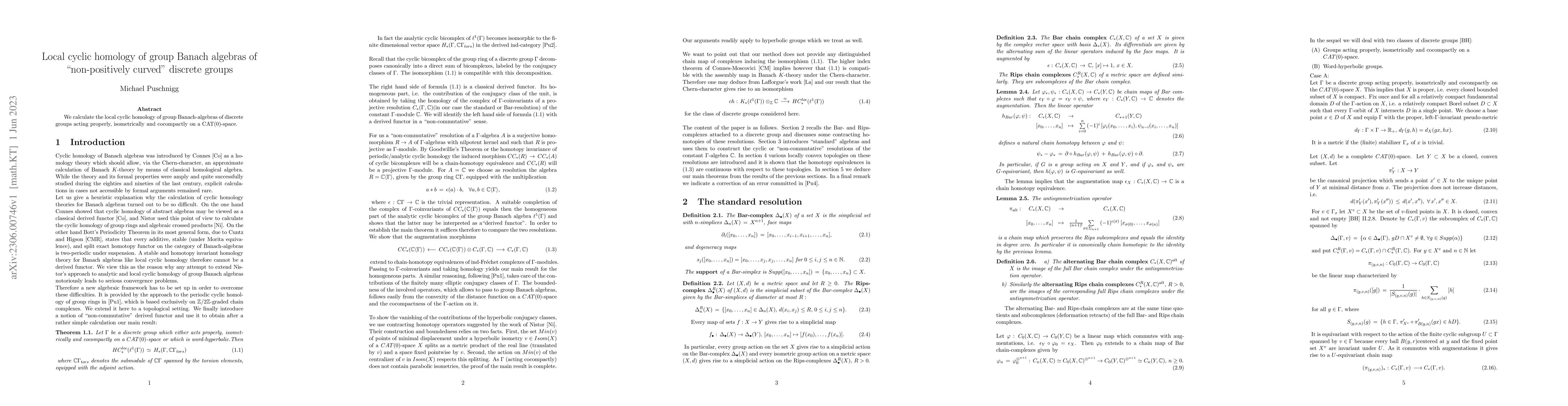 Summary: This paper calculates the local cyclic homology for group Banach algebras of discrete groups with "non-positive curvature," acting properly on a CAT(0) space. The study focuses on cocompact and isometric actions to derive these homology results.