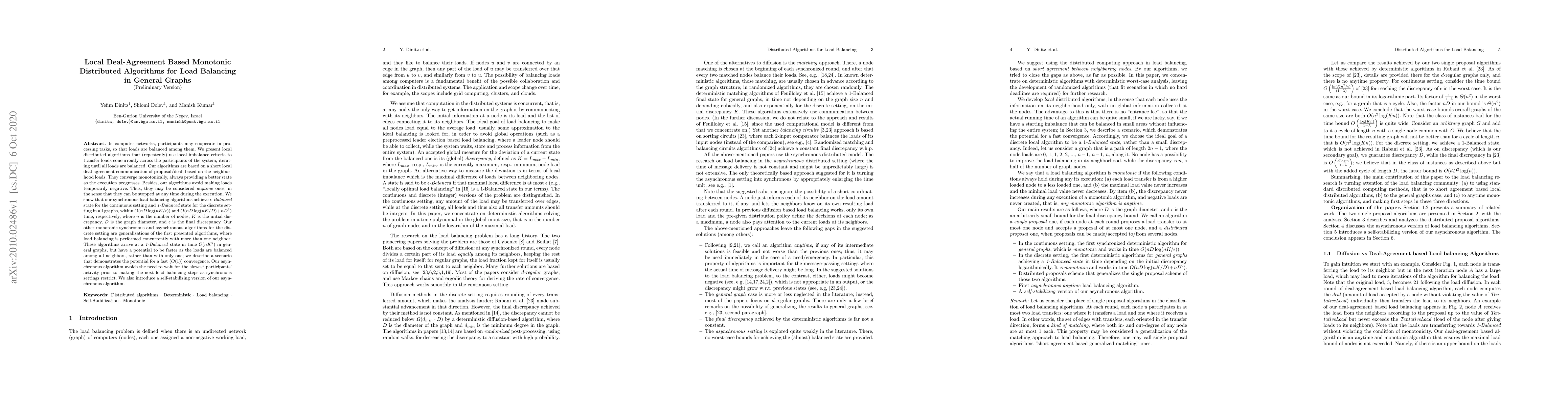 This paper presents local deal-agreement based distributed algorithms for load balancing in general graphs, which iteratively balance loads through neighborhood communication. The algorithms achieve monotonic convergence, avoid negative loads, and can be stopped anytime, achieving $\epsilon$-Balanced and 1-Balanced states in specified time complexities.