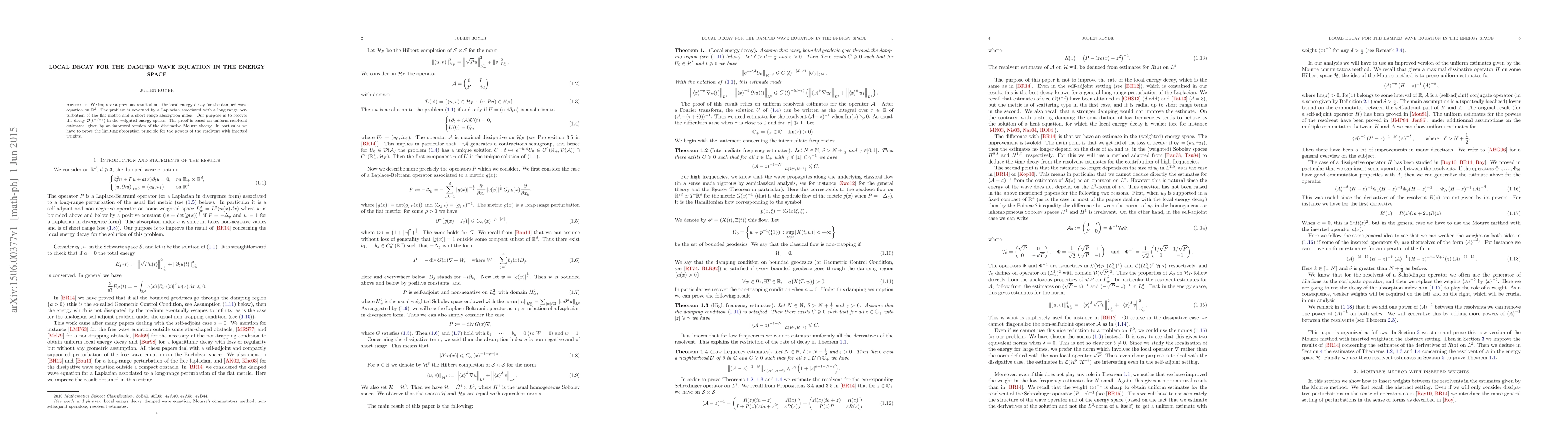 This paper enhances the local energy decay for the damped wave equation in \( \mathbb{R}^d \) by achieving decay rate \( O(t^{-(d+\epsilon)}) \) in weighted energy spaces. The proof leverages improved resolvent estimates from an advanced version of dissipative Mourre theory, including the limiting absorption principle for resolvent powers with weights.