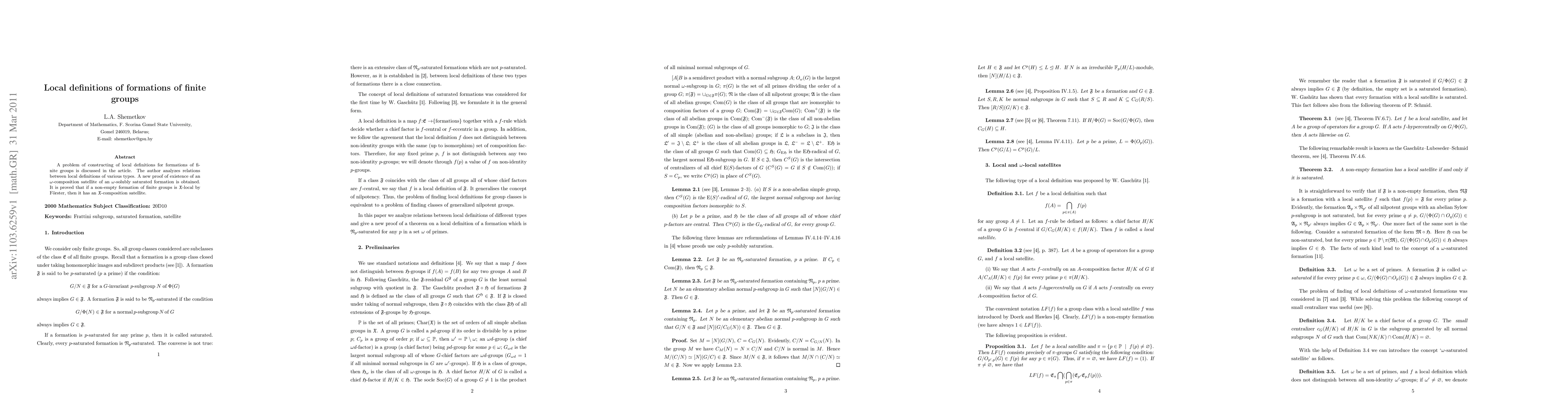 A problem of constructing of local definitions for formations of finite groups is discussed in the article. The author analyzes relations between local definitions of various types. A new proof of existence of an $\omega$-composition satellite of an $\omega$-solubly saturated formation is obtained. It is proved that if a non-empty formation of finite groups is $\mathfrak X$-local by F\"{o}rster, then it has an $\mathfrak X$-composition satellite.