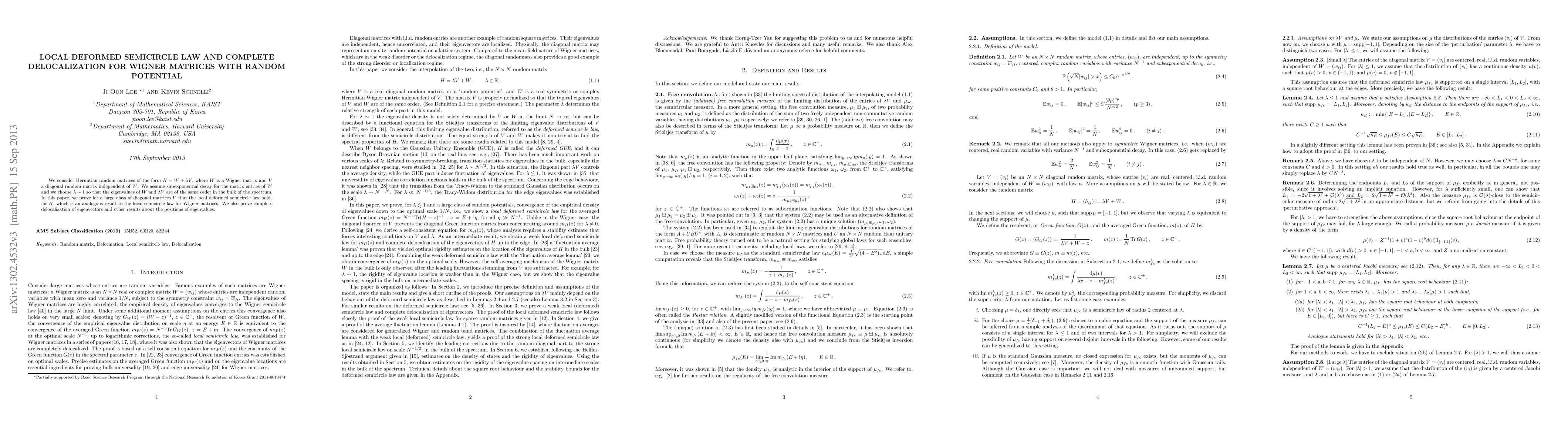 Summary: This paper demonstrates that Hermitian random matrices formed by adding a Wigner matrix $W$ to a scaled diagonal random matrix $V$ exhibit a local deformed semicircle law, akin to the local semicircle law for pure Wigner matrices, and proves complete delocalization of eigenvectors under certain conditions.