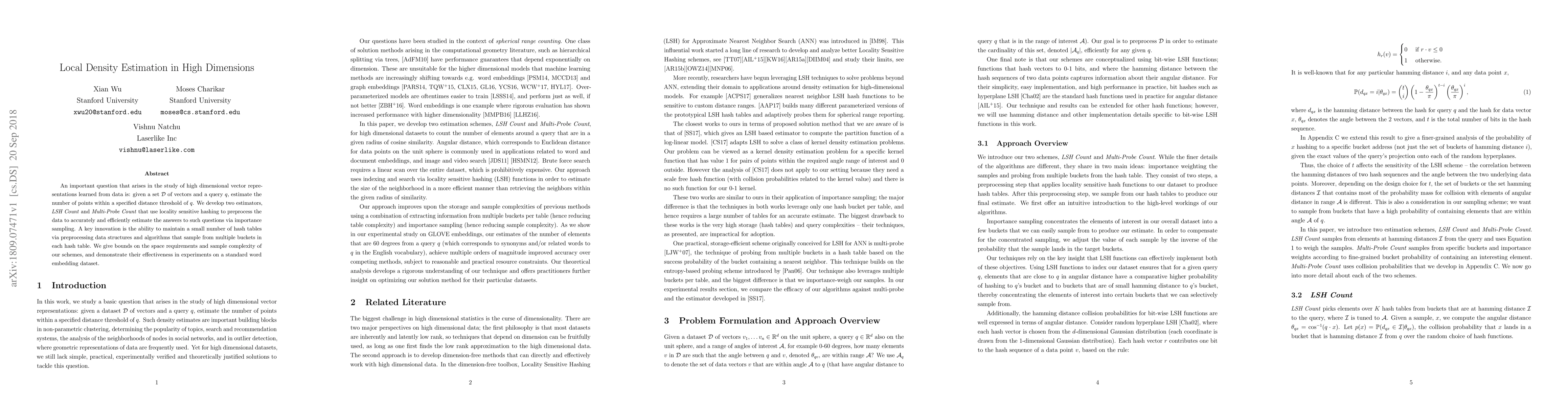 The paper presents novel LSH-based estimators (LSH Count and Multi-Probe Count) for local density estimation in high dimensions, along with preprocessing techniques to maintain a small number of hash tables efficiently.