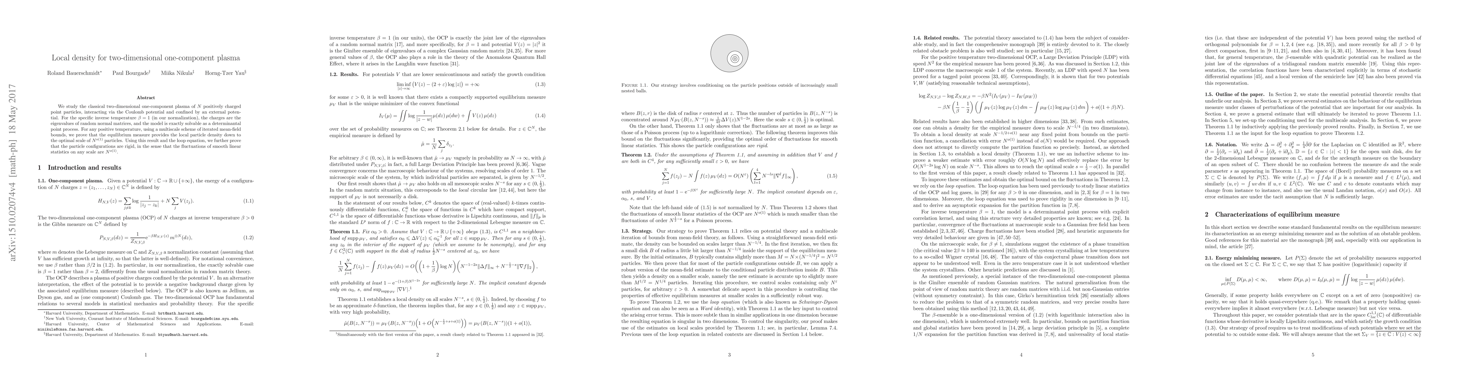 This paper investigates the local density of a two-dimensional one-component plasma at various temperatures, proving that the equilibrium measure provides accurate local particle density down to an optimal scale. Additionally, it demonstrates that particle configurations are rigid, with fluctuations of linear statistics being minimal at scales of $N^{o(1)}$ particles.